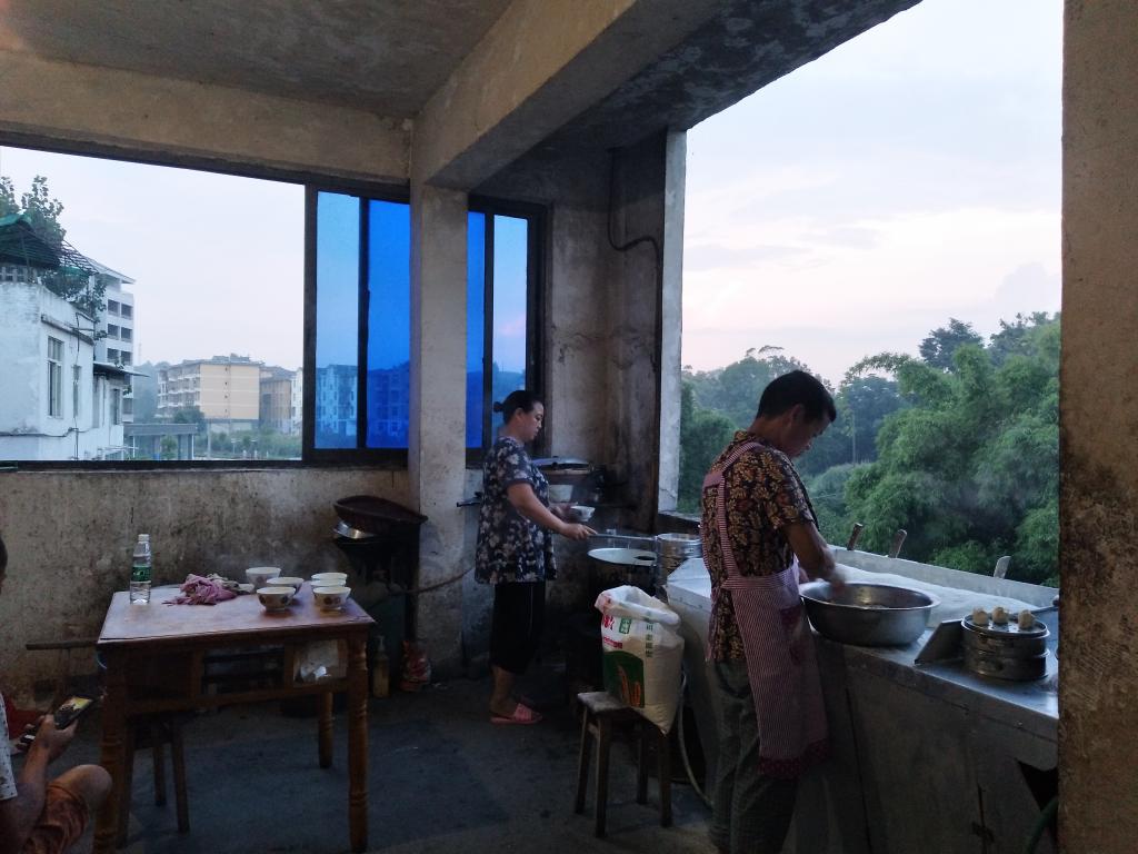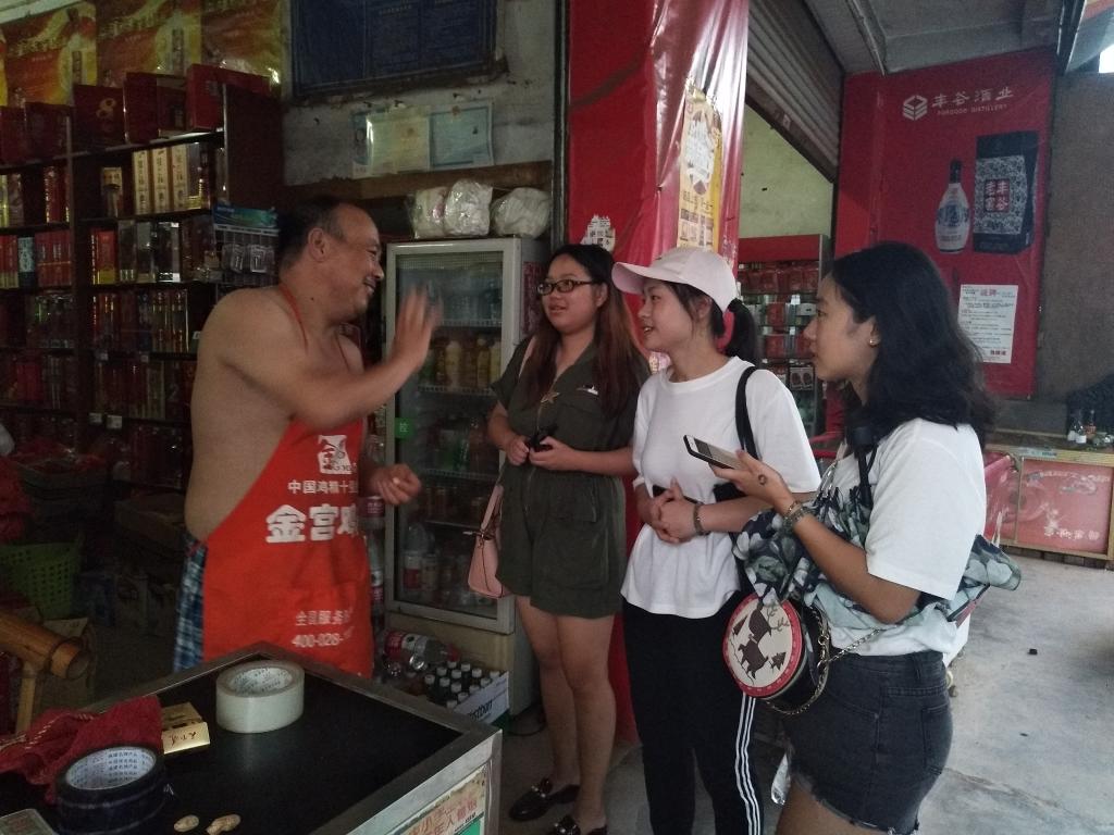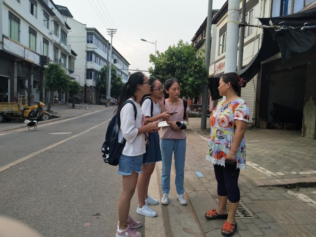 第二天早上六点整,团队从宾馆出发,沿路对乡镇里的居民进行走访。他们首先踏进了一家包子铺,狭窄的店面,几张破旧的桌凳。在与店里老板交谈的过程中,团队得知,这家店铺主要客源是早上务工人员,其它时间段少有客人。而这家小小的早餐店却要维持一家人的生活需要。