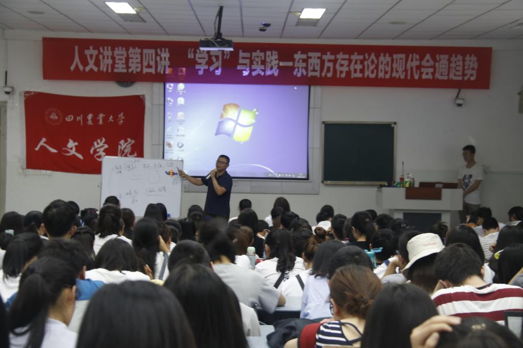 5月30日,潘坤老师做客人文讲堂第四讲,带来了以“‘学习’与实践——东西方存在论的现代会通趋势”为主题的讲座,十教A103预设座位252个,实际近400人到场聆听,全场座无虚席,很多同学站在教室过道上听完讲座。