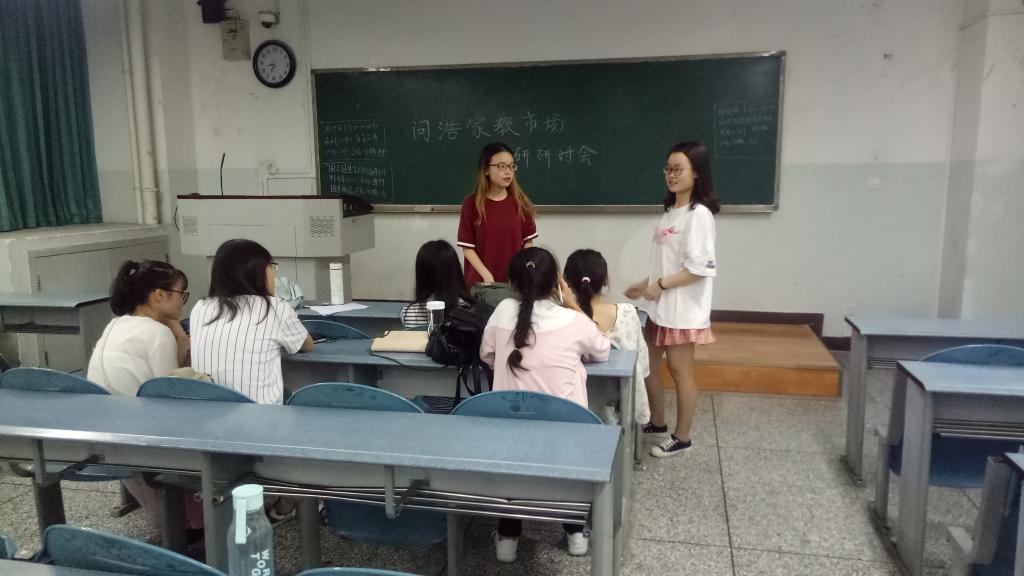 7月3日晚19点30分,太阳成集团tyc234cc暑期社会实践调研团队——问浩家教市场调研队10名成员陆续于十教a309教室入座,这里即将展开调研队的第一次正式研讨会。