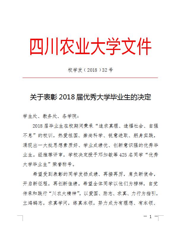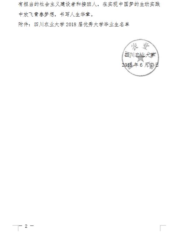 太阳成集团tyc234cc2018届毕业生校级优秀大学毕业生获奖名单