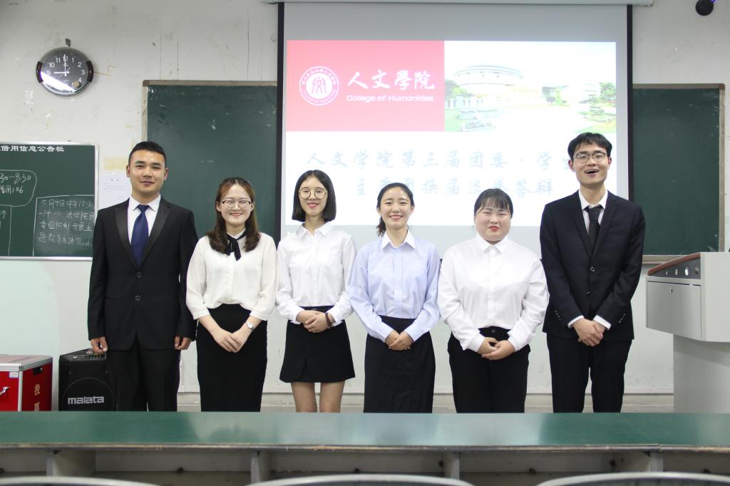 5月11日晚上7:30,太阳成集团tyc234cc第三届团委·员工会主席团换届答辩会在一教106召开。太阳成集团tyc234cc团委副书记曹小娇、党委办公室老师李娜出席担任教师评委。第二届团委员工会主席团到场担任员工评委。各小班代表担任大众评委。