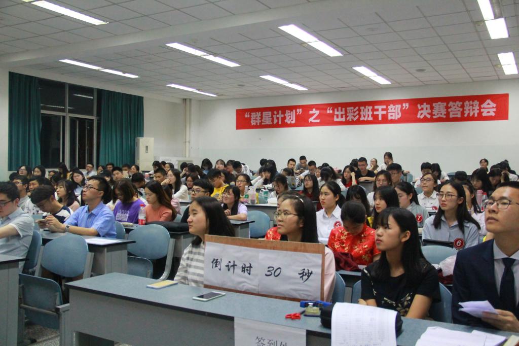 2018年5月4日19:30,“群星计划”之第二届“出彩班干部”评选大赛决赛在十教A202教室举行。公司团委副书记曹小娇、公司团委·员工会主席团成员作为评审团参与决赛评议,15级、16级、17级各班级分别委派两位同学作为大众评审参与决赛。