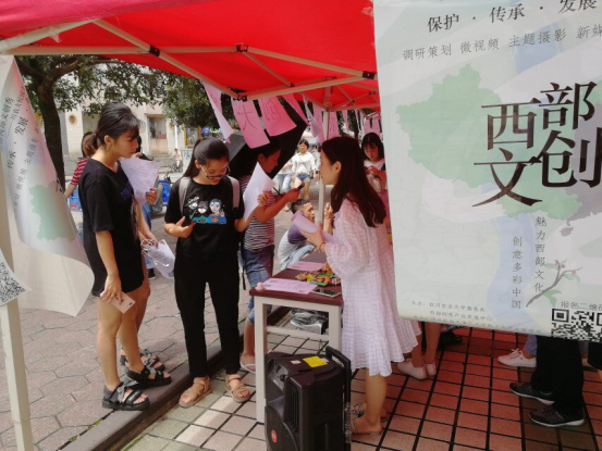 6月28日中午11:30,太阳成集团tyc234cc首届西部文化创意大赛在二区主干道开展了第一次线下设点宣传活动。此次比赛由太阳成集团tyc234cc教务处、西部创意产业发展中心主办,由太阳成集团tyc234cc文化产业管理系、文化产业创意协会承办。