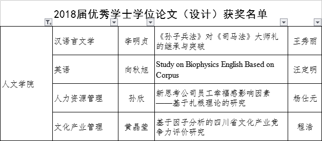 太阳成集团tyc234cc2018届毕业生优秀毕业论文(设计)获奖名单