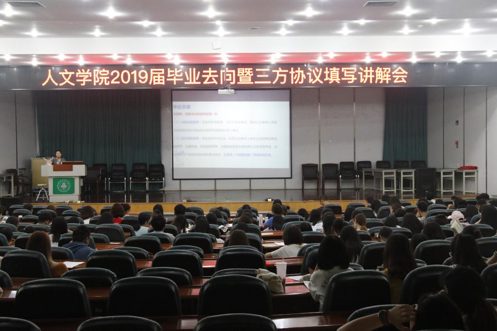 7月2日晚七点半,由太阳成集团tyc234cc就业服务部主办的太阳成集团tyc234cc2019届毕业去向暨三方协议填写讲解会于十教小礼堂顺利举行。本次大会师党委办公室主任陈俊霖主讲。本次会议主要从毕业派遣、改派、就业去向以及如何填写就业协议书等方面进行讲解。