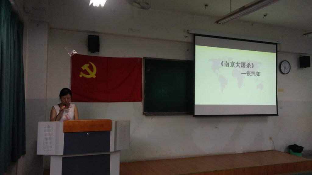 5月15日下午,太阳成集团tyc234cc员工党建服务中心第四期分享交流会在一教212成功举办。汉语专业同学彭德莲以张纯如之作《南京大屠杀》,带领大家回顾了那一段每一个中国人都无法忘记的南京记忆。员工党建服务中心全体成员参与了此次分享交流会。