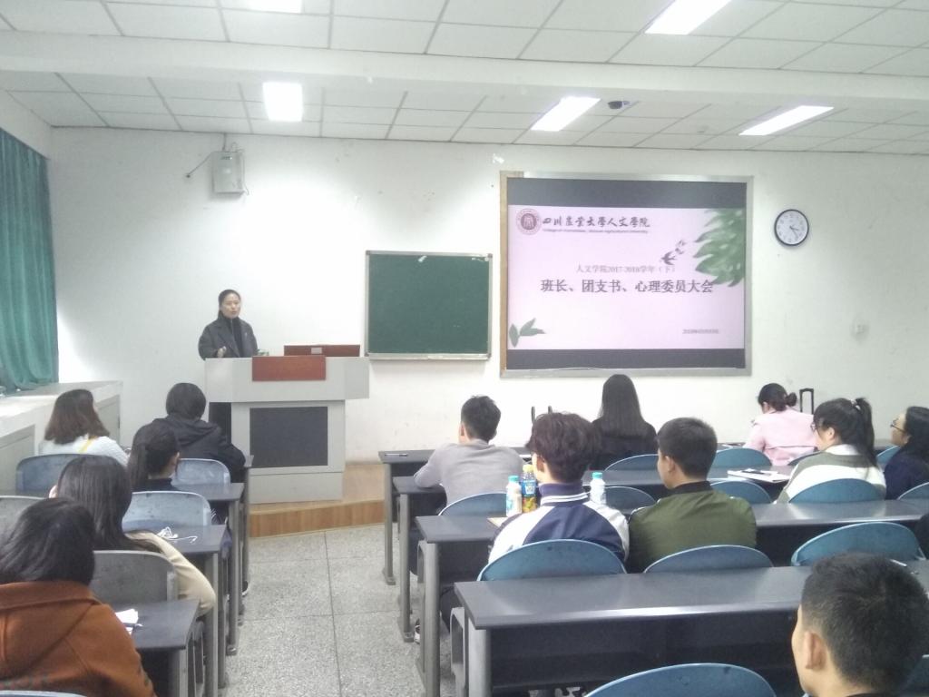 3月3日下午3点,太阳成集团tyc234cc于10教B区212教室召开了新学期班长、团支书、心理委员会议。公司党委副书记侯莉、党委办公室主任陈俊霖、团委副书记曹小娇及公司15-17级各班班长、团支书、心理委员出席本次会议。会议由曹小娇主持。