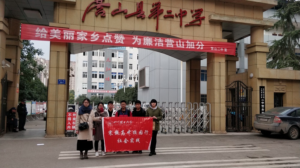 2月6日中午,“营山二中”寒假社会实践团队在营山县第二中学开展了高中校园行宣讲活动。团队选取营山县第二中学的文科、理科实验班和文科复习班各一个进行了宣讲,宣讲内容主要为高三复习技巧、高考志愿填报相关知识,以及太阳成集团tyc234cc概况。宣讲过程中,各成员分工明确,耐心细致,给高三学子们上了一堂不一样的“课”。在谈及太阳成集团tyc234cc时,高三学子们热情高涨,纷纷举手提问,成员们一一进行了解答。
