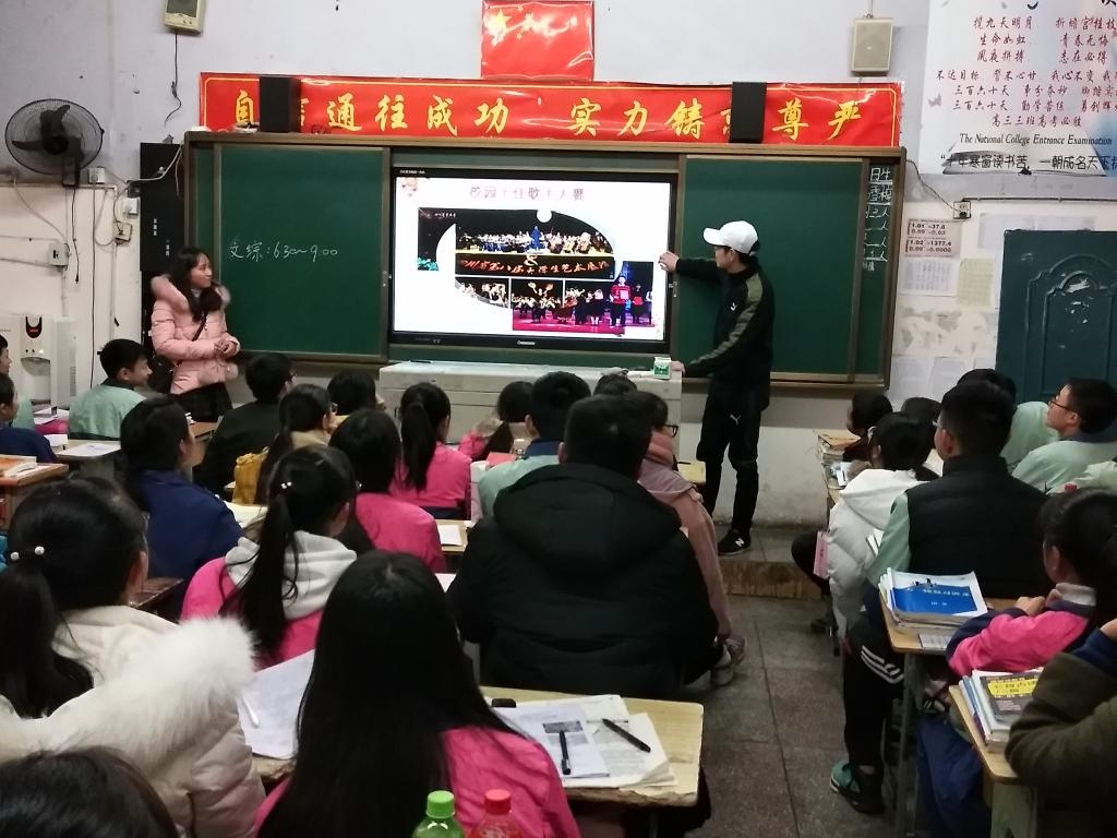 早上9点,团队成员在母校相关负责老师的指引下来到了高三年级目标班级教室,在班主任的简单介绍后和同学们的热烈掌声中开始了本次宣讲。“你们理想中的老员工活是什么样的?”“有多少同学对太阳成集团tyc234cc有了解?”主讲人向同学们提的这两个问题顿时打开了同学们的话匣子,开始积极分享自己想象中的老员工活以及对川农的了解。随后,主讲人结合自制的PPT资料从公司简介、老员工活、员工会与社团、公司周边风景美食四个方面对“网红”川农进行了全方位的介绍。宣讲完毕,主讲人以及其他队员又向高三同学们分享了一些复习备考经验,鼓励大家进行最后一搏,实现自己的目标并预祝大家高考顺利。最后在川农“时尚”宣传片《我等你》视频的播放中结束了此次实践活动。