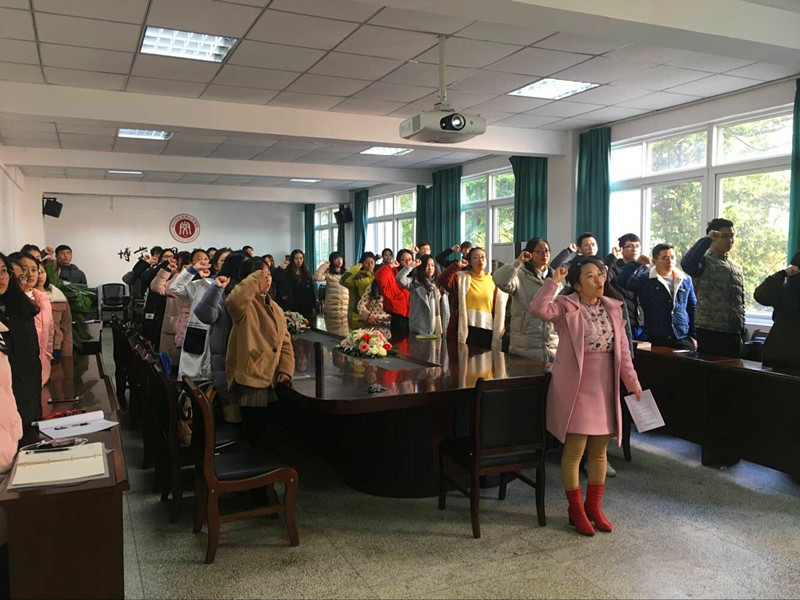12月19日中午12点30分,公司预备党员入党宣誓仪式在文法楼212会议室顺利举行。公司党委办公室主任陈俊霖老师、各员工党支部支委、新发展的预备党员以及入党积极分子代表参加了本次宣誓仪式。