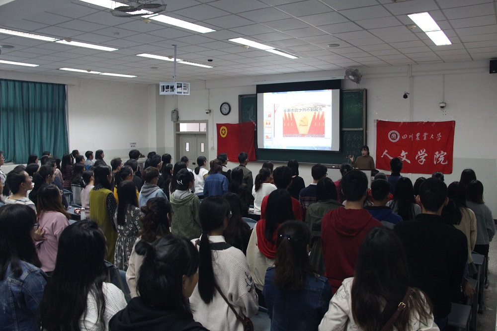 会议伊始,全体人员齐唱团歌。紧接着,主讲人围绕“我国近年来的辉煌成就”、“中国‘新四大文明’”、“十九大之重要内容”、“怎样做好新时代新青年”四个方面对十九大的相关内容进行了详细的讲解。会议着重强调,只有广大共青团员牢固树立新思想、牢记新使命、锤炼新本领和奋发展现新作为,才能成为担当民族伟大复兴重任的新青年。其间,主讲人与各支部团干之间还进行了简单的互动,较好地活跃了现场氛围。