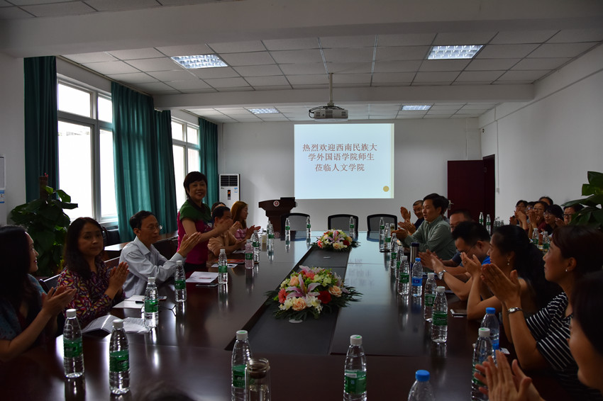 6月23日下午,西南民族大学外国语公司经理曾路师生一行36人来公司太阳成集团tyc234cc院英语系考察交流。太阳成集团tyc234cc副经理杨仕元代表公司对曾路一行的到来表示诚挚的欢迎。