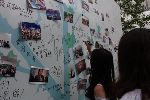 “四年四载川农情,一生一世人文人”,“匆匆四年,不说分手,各自珍重,江湖再见”,“曾经的毕业季我们是看客,如今的毕业季我们成为了主角”……6月9日晚,毕业欢送晚会前夕,毕业学子纷纷在征集的大学四年回忆主题照片墙上签名留言。
