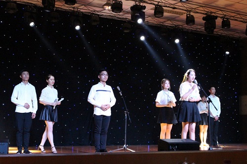 晚会分“青于生涩”、“碧于韶华”、“浓于青春”三个篇章。乐手联盟带来《青春是一首歌》为晚会炫爆开场。随后,经理吴军赞致辞,他回顾了同学们在校学习的点滴瞬间,代表公司表达了对全体毕业生的美好祝愿。Darling Dance舞社带来的现代舞《狂欢序曲》,和着音乐动感的节奏,舞姿灵动曼妙;歌曲串烧《青葱岁月》融情于歌,带领大家回忆四年光阴;同学们自创的诗歌《梧桐更兼细雨》由毕业生代表孙远等人声声柔情,道出毕业离伤;弦音奏起,吴枭麟和张志文同学的吉他弹唱《四海为家的人》为众人带来了一场独特的听觉盛宴;由张郑、王凯等人带来的《自由》以群舞讲述了一个渴望自由、追逐青春梦想的年轻人的故事;毕业生代表贾雨蒙和蔡静文的双人舞《舞霓裳》风韵妖娆,令人百般回味;女子拉丁队活泼动感的恰恰《夏日花瓣》热情多姿;在晚安曲《那些花儿》的合唱中,晚会落下帷幕。晚会中,公司中文系主任李峰教授、英语系秦岭老师更是亲自登台献唱,为毕业生送上真挚的祝福,引得掌声连连,微信点赞。