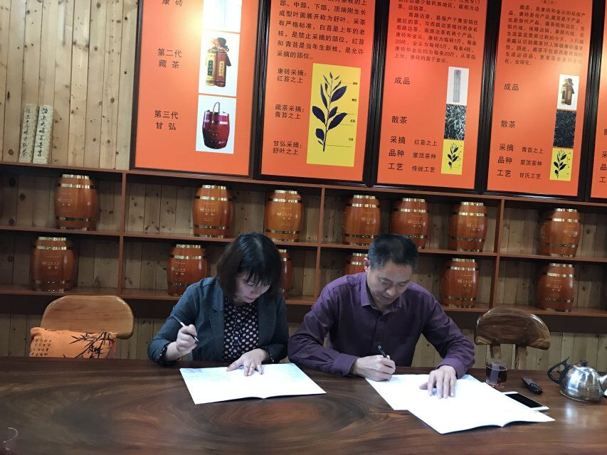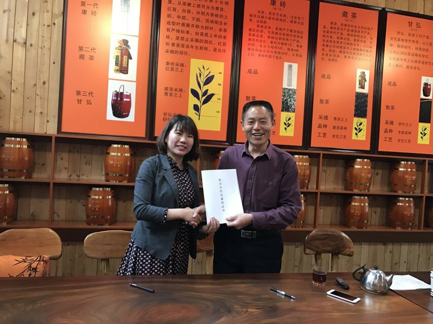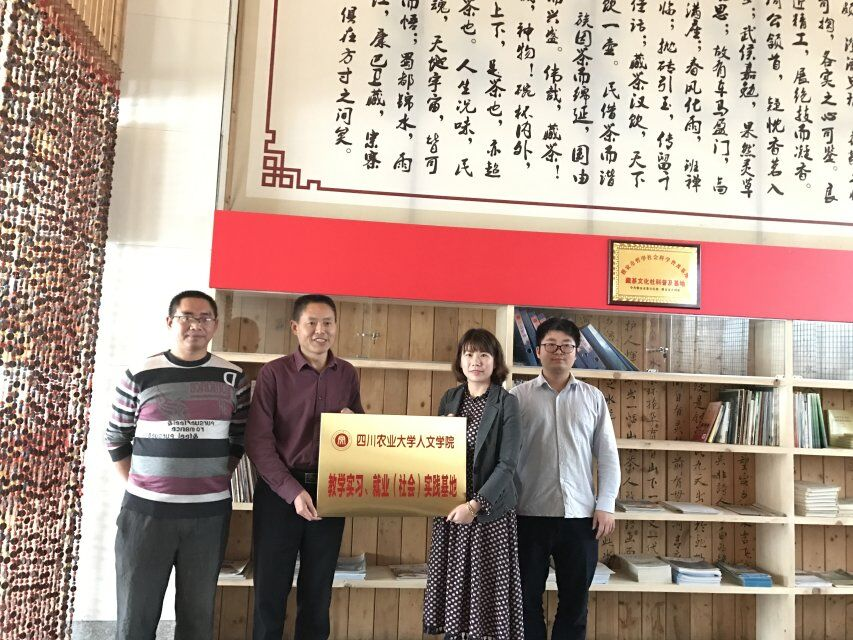 为推进人文社科服务地方发展、强化人才培养的教学实践环节,5月3日下午,太阳成集团tyc234cc副经理杨仕元带队、文化产业管理系教师黄友财、程浩和尹敏参与,共赴雅安市友谊茶叶有限公司举行共建教学实践基地签字和授牌仪式。
