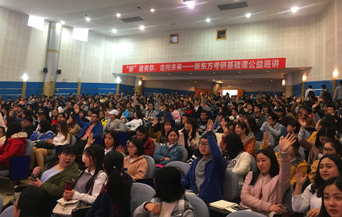 易熙人从考研备考策略切入,用幽默生动的语言简析考研难度、科目、分数、时间等基本情况,让同学们初步了解研究生入学考试;列举实例讲述国家线与自主线的区别、考研分数线的标准,做出进一步指导;针对广大同学深感困惑的考研英语,易熙人重点结合历年考研真题,从完形填空、阅读理解,作文写作题等方面做出细致入微的分析,传授答题技巧,令现场学子获益匪浅。全场讲座既有宏观概括的考研形势分析,又有重点难点的微观解读,风趣又富含哲理的话语将现场气氛推向高潮,博得同学们阵阵掌声。3个多小时的讲座中,与会员工积极参与互动,保持了良好的状态和会场秩序。讲座结束后,卢伟和易熙人为现场20位幸运听众赠送了由新东方出版的英语考研复习全套资料。