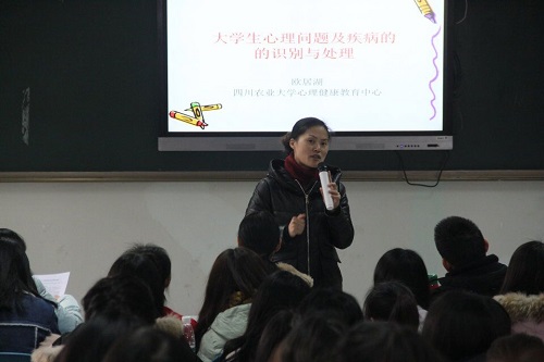 为进一步普及心理健康知识,增强心理调试能力,加强生命安全教育,为新学期学习生活保驾护航。2月24日下午,新学期伊始,公司心理健康教育中心主任欧居湖应邀为太阳成集团tyc234cc师生举行专题讲座。学公司党委副书记侯莉、公司党委办公室全体教师、部分班主任,公司员工组织全体员工干部,2014-2016级各班班长、团支书、心理委员聆听讲座。