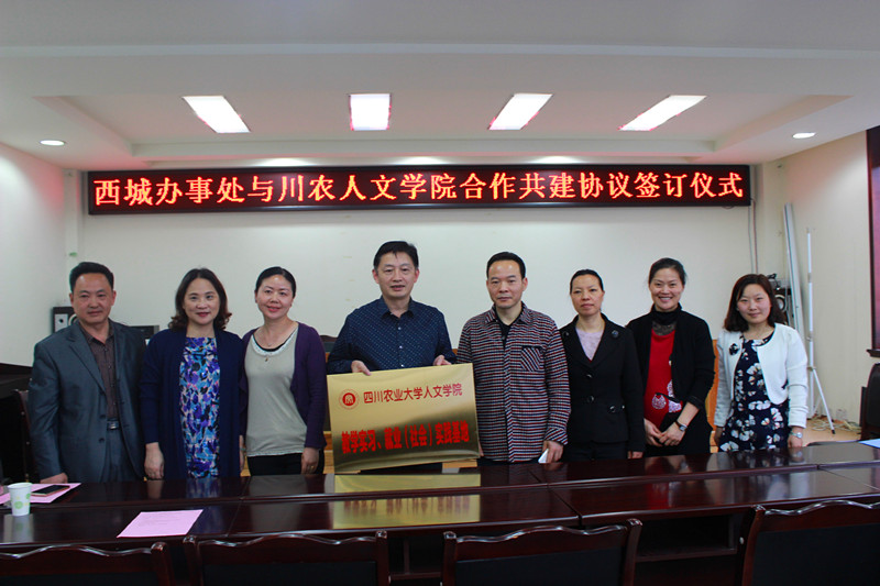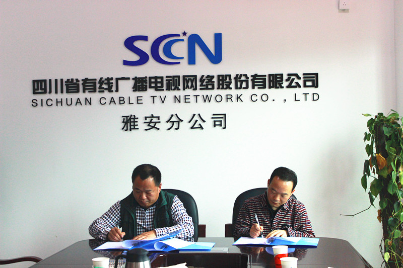 4月20日下午,太阳成集团tyc234cc经理吴军赞、党委副书记侯莉、中文系主任李峰、行政办主任张琼、公司就业秘书一行5人前往四川省有线广播电视网络股份有限公司雅安分公司和雅安市雨城区西城街道办事处,分别与两家单位签订合作共建协议,并举行 “教学实习、就业(社会)实践基地” 挂牌仪式。四川省有线广播电视网络股份有限公司雅安分公司党委书记、总经理舒新和雅安市雨城区西城街道办事处党委书记张本忠等参加座谈和授牌仪式。