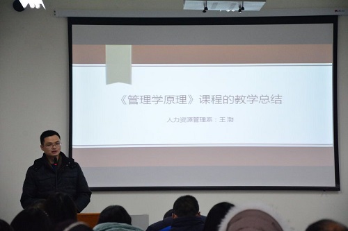 比赛过程中,每名参赛教师通过15分钟的说课时间,以PPT展示的形式就教学对象、教学内容、教学目标、教学过程、课程考核和教学反思等方面进行了详细地讲解。在认真听过参赛教师的说课后,各位评委给予了点评。最终,中文系霍省瑞的说课“明代文学史”以465分的成绩获得一等奖;政治系郑林凤的“行政学概论”、文化产业管理系尹敏的“影视娱乐管理”获得二等奖;人力资源管理系王渤的“《管理学原理》课程的教学总结”、英语系张的妮的“信息网络环境下泛读怎么读”、法学系唐薇的“弘扬契约精神,塑造法治理念——《合同法学》课程教学的创新及改革”获得三等奖。