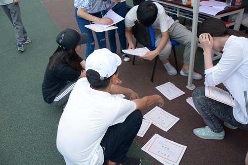 志愿者们一刻不停地维持着现场秩序,保证比赛的正常进行;搬运相关运动器材,安排运动员现场检录,不断确定运动员所在跑道是否与人员相互对应;统计运动员成绩,为个人颁奖和班级积分做好充分的记录;认真审核各班投稿,即时播报班级稿件,在广播中为每一位参赛的运动员加油助威;终点处迎接运动员,为剧烈运动之后的健儿们送上矿泉水和解暑药品……他们的身影穿梭于各个地点,处理赛场紧急情况,用汗水和笑容确保了整个比赛的顺利进行。