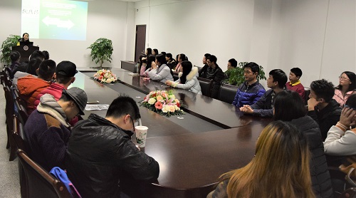 随后王虎成就自己在创业过程中所遇到的困难和积累的经验对有意愿创业的同学提出了建议。他建议创业前必须认真思考项目的选择、成本的预算、合伙人的信誉、分工的合理性以及资源的利用。而后,汪绍福以拆字法把“赢”字讲解为五个方面:亡—危机意识、口—表达能力、月—时间观念、贝—财富与知识、凡—平常心态,并依次从这五个方面分享他的创业经历。