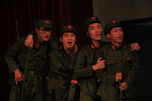 在朝气蓬勃的舞蹈下,本次示范性团日活动拉开了帷幕。齐唱团歌后,主持人对近期热点新点做了简短的播报。在热烈的氛围下,各专业16级的同学们开始了汇报表演。首先由英语专业的同学们带来舞台剧《十送红军》,紧接着汉语言文学专业与人力资源管理专业的同学分别表演了情景剧《征途》与《红色印记》。而后,原创视频《追忆》将活动气氛推向了高潮。最后,文化产业管理专业的同学们带来了严肃而又不失幽默的综合节目《王尼玛的长征之路》,将时代感注入历史情节中的表演形式使同学们更容易接受。