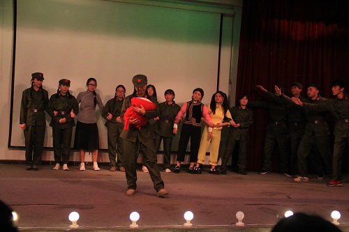 随后,曹小娇对本次活动进行了点评。她对本次团日活动提出高度赞扬,希望同学们能真正理解本次团日活动的意义,将长征精神永远铭记在心,将红军坚韧不拔的精神延续下去。在评委与大众评审的投票打分后,文化专业与英语专业分别获得本次活动的一等奖与二等奖,汉语言专业与人力专业获得了三等奖,由唐梓维为获奖者颁奖。最后,本次活动在响亮的团歌声中落下帷幕。