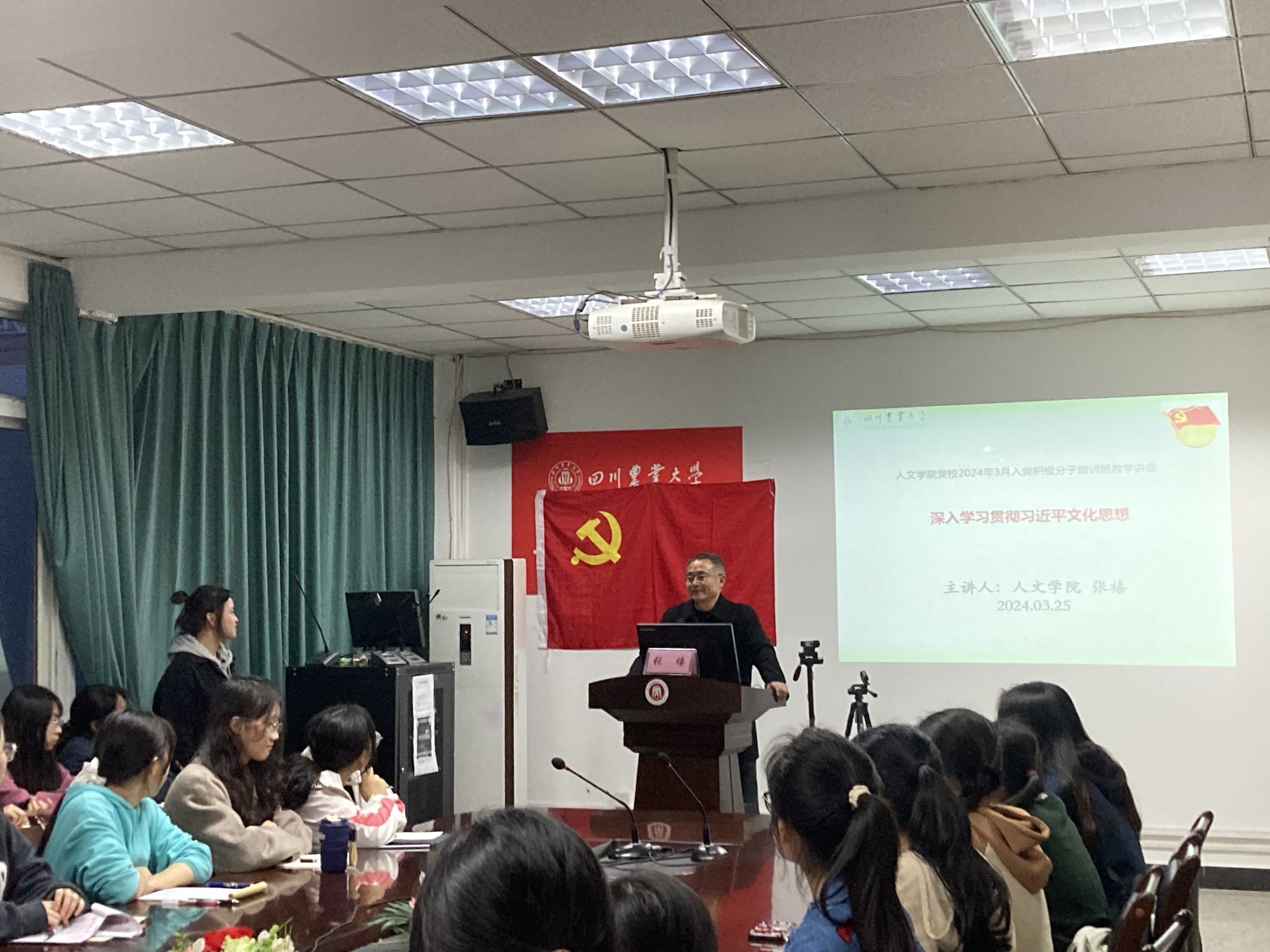 为加强对入党积极分子的思想教育和进一步加深对入党积极分子的培养,3月25日19:20,太阳成集团tyc234cc2024年春季学期入党积极分子培训班在文法楼212会议室顺利开班。公司党委书记张禧教授作《深入学习贯彻习近平文化思想》专题讲座。
