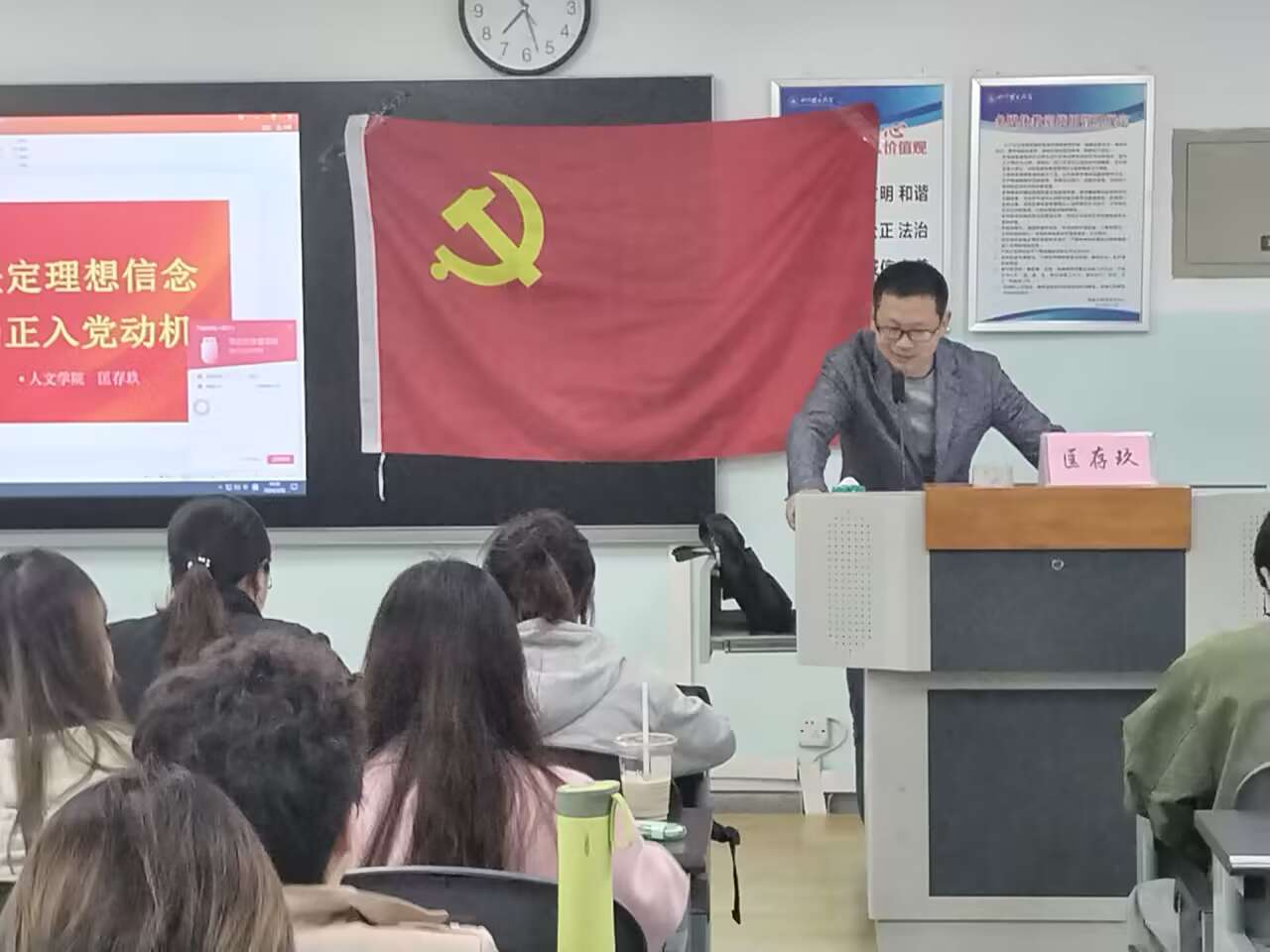 3月26日19:30,公司党校第96期第三讲在1-408顺利开展。公司党委委员匡存玖作《坚定理想信念,端正入党动机》主题讲座。