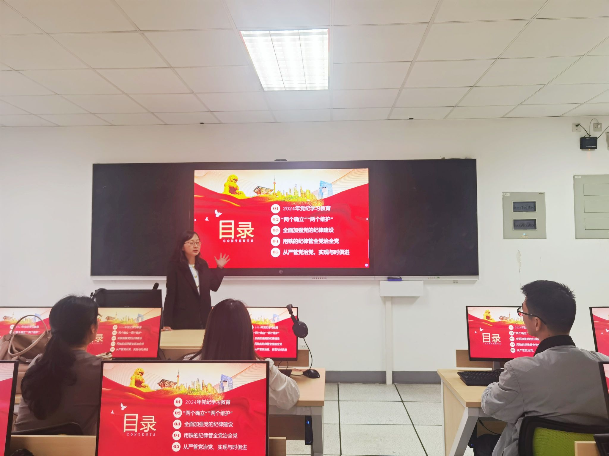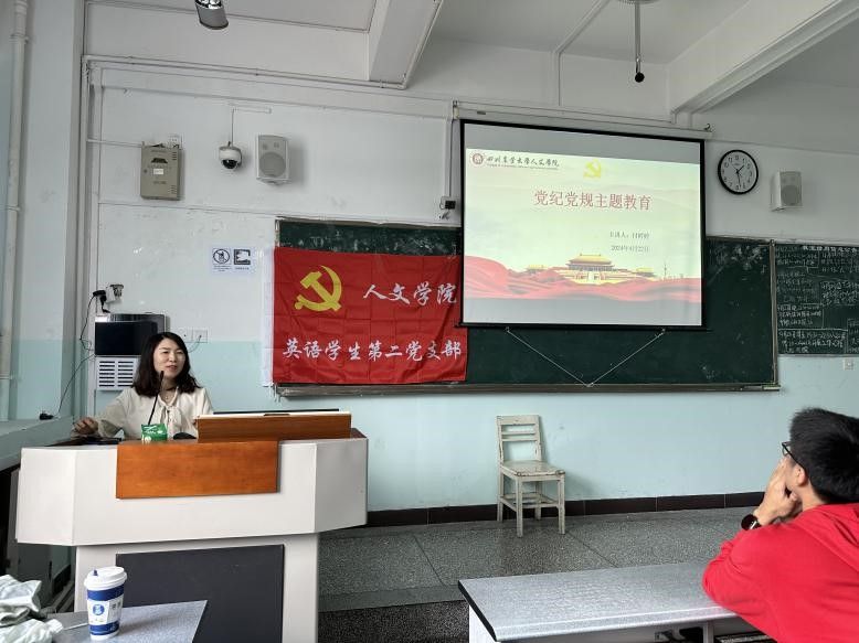 成都教学部教工党支部书记虞跃在《加强党纪学习,做到知行合一》党课中讲解了开展党纪学习教育的重要意义,强调要加强党纪学习,用党规党纪校正思想和行动,做到学纪、知纪、明纪、守纪,把纪律规矩转化为思想自觉,把遵规守纪刻印在心,内化为言行自律。