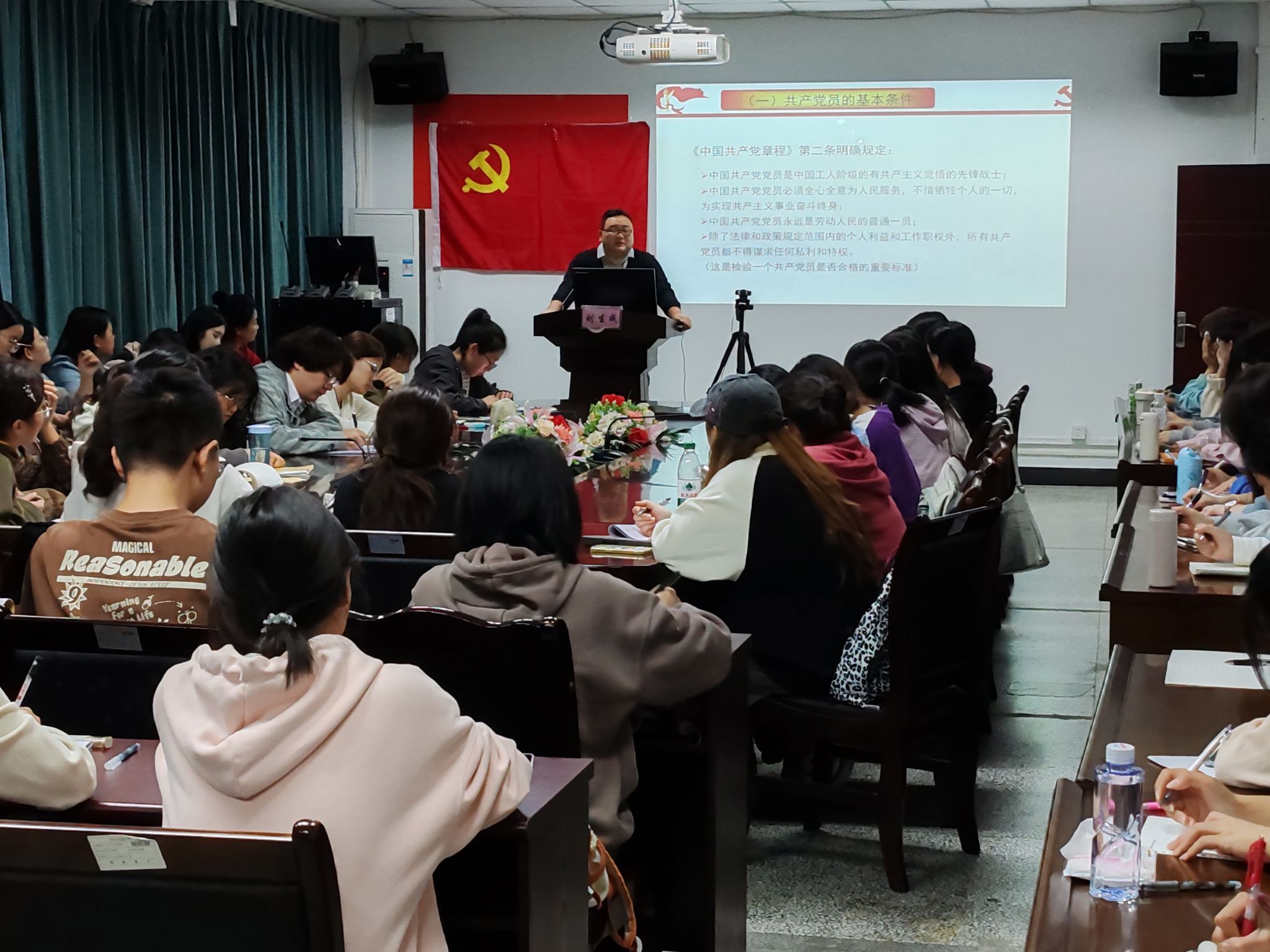 101719:00,太阳成集团tyc234cc97期党校第五讲在7-212顺利开展。公司党委办公室主任、团委书记刘生成为本期学员作《中国共产党的性质、宗旨和组织原则》及《中国共产党党员条件和入党的基本程序》专题讲座。