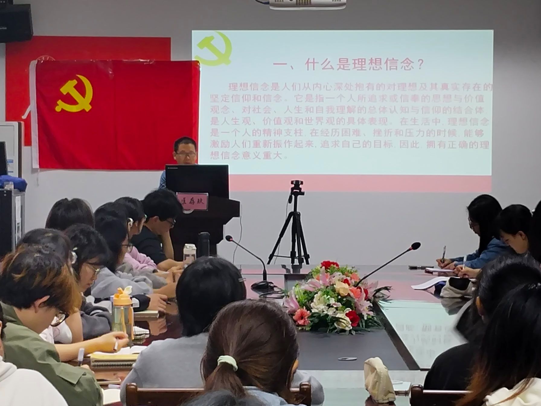 匡存玖以理想信念为切入点,从什么是理想信念,为什么要坚定理想信念以及怎样坚定理想信念三个方面进行详细解读。他列举了入党动机不端正的案例,告诫学员们应明确入党意味着什么,作为一名入党积极分子需要端正个人入党动机,保持思想的纯洁性,指明了成为一名正式党员的努力方向。学员们在他的生动讲解中也明确了肩上的责任与未来的目标。在谈及理想信念时,匡存玖从鲜活的实际案例出发,向学员们介绍了党的百年历程中涌现出的优秀党员,展现了党员冲锋向前、不怕牺牲的光辉形象。他指出,中国共产党是最讲奉献、最肯担当、最不怕讲牺牲的政党。与此同时,他还采取正反面向结合的方式突出了理想信念对于党发展的指引作用。