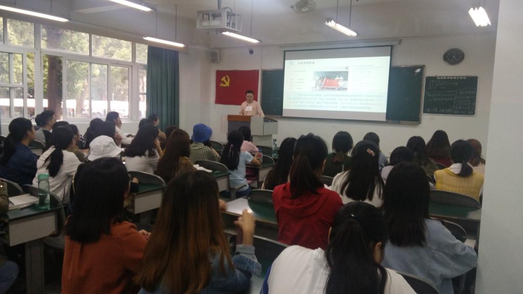 活动在《国际歌》中拉开序幕。首先,是2018年暑期社会实践校级优秀团队分享交流环节。在今年暑期社会实践活动中,员工党员、入党积极分子积极参与,其中两支校级优秀团队成果突出。其一是由预备党员李杨带领的“十年梦之队”团队,前往北川进行了调研,他将所见所闻所感进行了分享——十年过去了,北川的地震场景和新变化都给人带来深刻印象,伤痛与重生,激励着人们朝着更好的目标努力奋斗。李杨最后向同学们分享到,在团队建设方面,选好实践主题、合理安排时间、挖掘实践亮点、按阶段做好每一个任务。