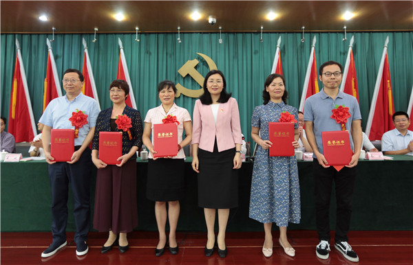 党委书记庄天慧为优秀党务工作者代表颁奖
