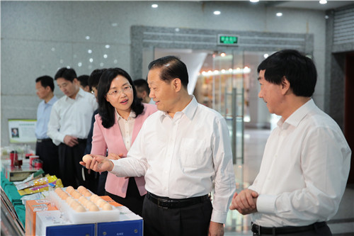 他翻阅了公司为45个深度贫困县制定的扶贫方案,对方案做到“一县一策,一乡一方”精准施策给予了肯定,认为公司工作做得很细。在公司部分科技成果转化服务地方经济发展,助力精准脱贫和乡村振兴的实物展示区,彭清华饶有兴趣地询问粮油、果蔬、经济作物、畜禽等品种情况。