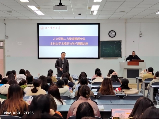 近日,人力资源管理系在十教A204开展面向2023届本科毕业生的本科生学术规范与学术道德讲座。人力资源管理系主任贺国荣、学科点负责人岳龙华以及人力资源管理系2019级全体本科生参加讲座。