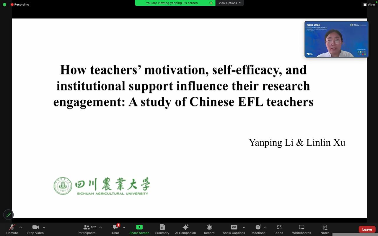 2024年5月16日,教学部李艳平博士受邀参加由印度尼西亚Universitas Ahmad Dahlan大学主办的2024International Undergraduate Conference on English Education (IUCEE)大型线上学术会议。此次大会的主题为Socio-cultural Perspectives in ELT: Navigating the Digital Landscape(数字化环境中社会文化视角下的英语语言教学)。大会邀请了来自德国、菲律宾、中国等国家的专家学者,数百人参与了此次线上会议。
