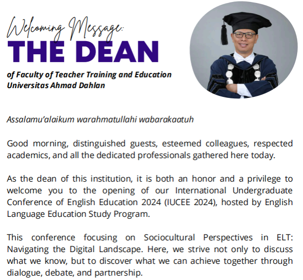 图为Universitas Ahmad Dahlan大学教师培训与教育经理的大会欢迎词