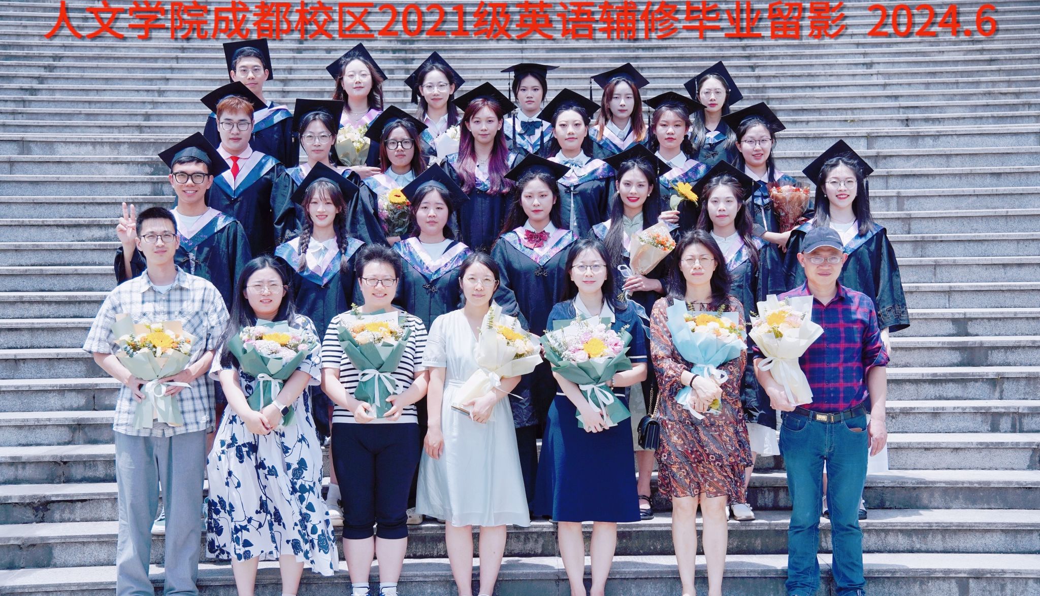 四年时光弹指一挥,又到一年盛夏的毕业季。太阳成集团tyc234cc成都校区2021级英语辅修学位的毕业生们迎来了毕业这一重要时刻。6月11日,在成都校区二教楼前,同学们整理好学士服,和成都教学部的老师们一起拍摄了毕业合影,共同定格这一喜悦时刻。辅修班级大合影承载着毕业生的情感,也成为学子们共同的青春记忆。
