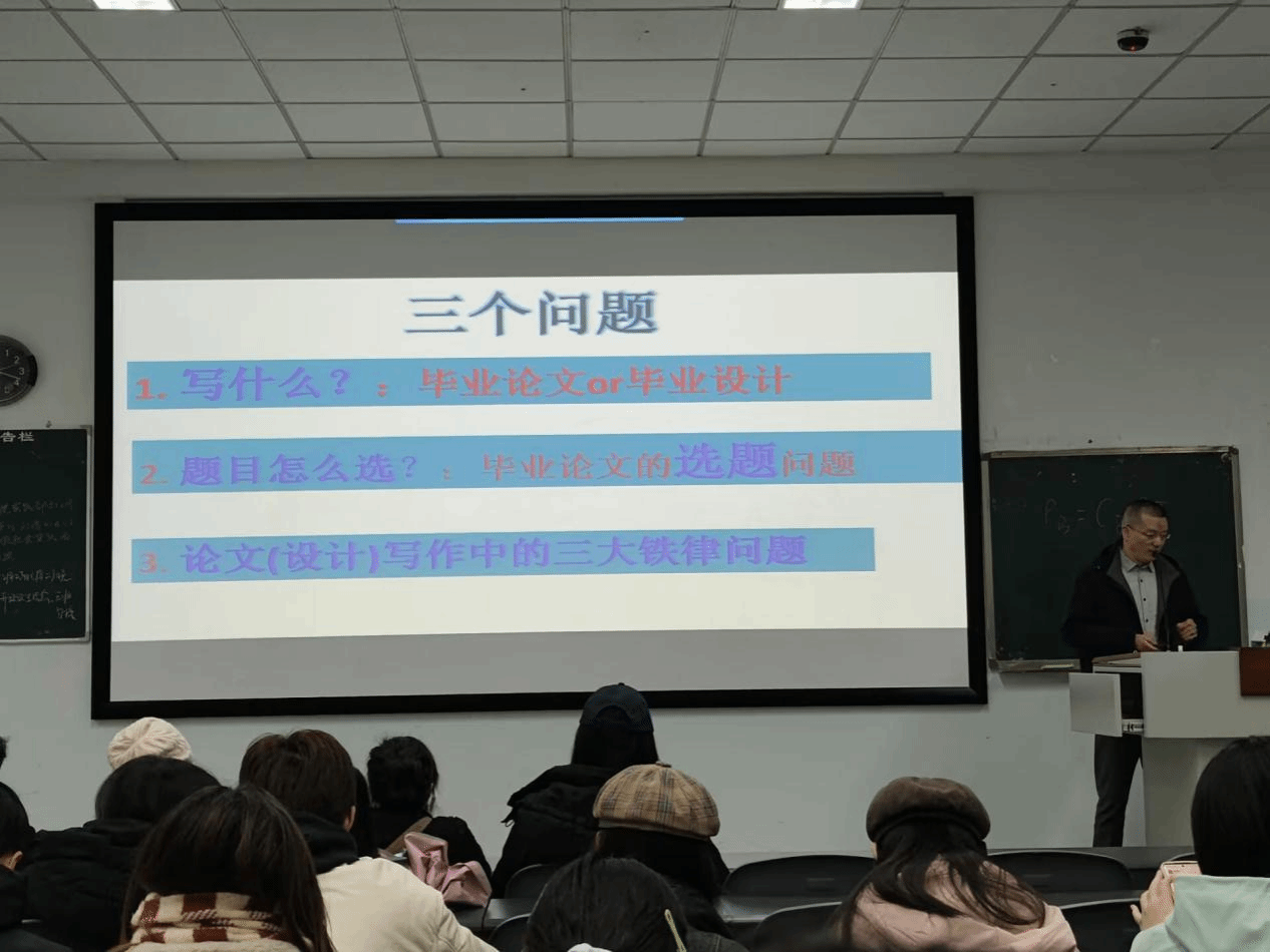 英语专业负责人高怀勇教授围绕毕业论文与毕业设计选择、选题规范、论文写作三大核心问题开展培训,强调专业相关性、政治正确性与学术诚信。其中,深造意向者建议选择毕业论文,这一类别有助于提升研究能力、助力考研复试,有助于优秀学士论文评选;毕业设计以“某某文本的翻译与评析”为题,选材需避免经典成熟译本或过于专业的领域,核心在于翻译后的自我评析。选题方面必须紧扣英语语言、英语文学/文化两大方向,聚焦翻译理论、语言教学等相关内容,且选题要具体聚焦、结合案例或文本,确保研究有明确对象与可操作性。论文写作需恪守客观公正、政治正确、学术诚信三大铁律,重复率严控低于30%,严格遵循2026版写作规范格式,论文需通过答辩、形式审查、教育部抽查三关,格式审查为跨公司交叉进行。