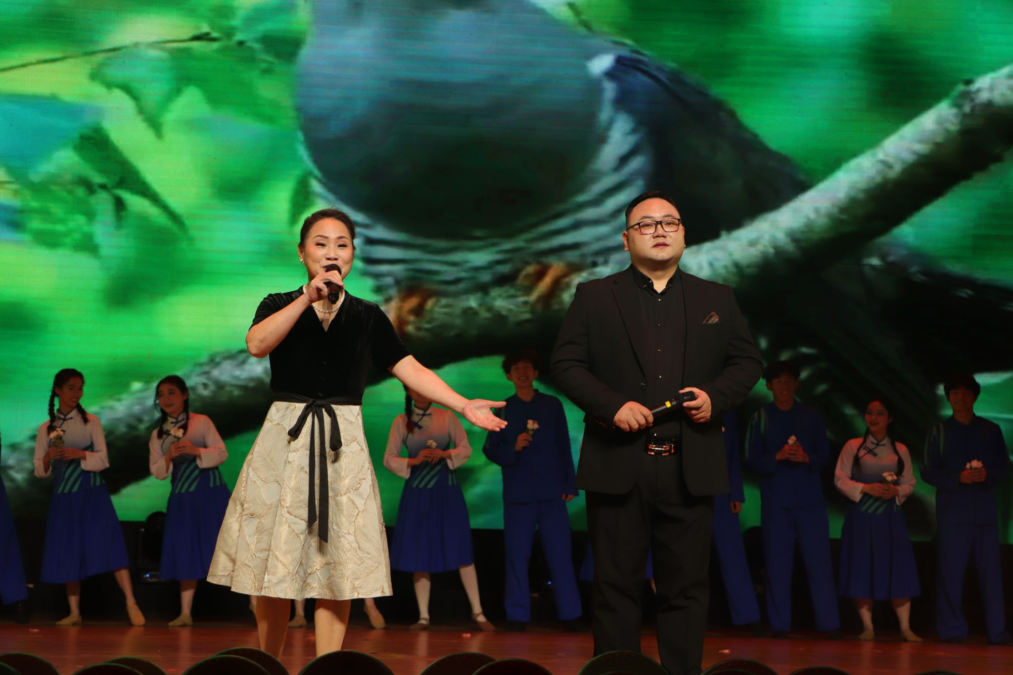 承载昔日辉煌,燃烧心中理想,合唱团演唱的《大鱼》和《相逢在桂花飘香的时候》让听众的耳朵如沐春风;舞蹈团的《风声》和《茉莉芬芳》从舞者的视角传达了在动荡时代的先辈们那份坚韧与刚毅,以吾辈之青春年华,纪念逝去的岁月,献礼活力之川农。
