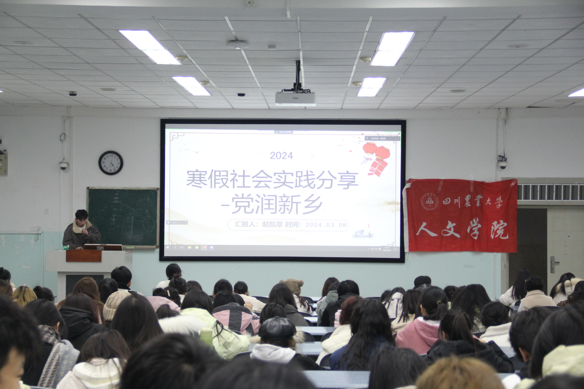 为分享优秀团队及优秀个人社会实践经验,展现人文学子寒假社会实践风采,公司团委实践部于3月8日16:20在十教A101、十教A103教室开展以“青春返家乡,筑梦建新功”为主题的寒假社会实践总结交流会。团委实践部陈娇担任此次分享会的主持人。本次活动邀请到“党润新乡”、“向阳花”、“桑榆非晚 智享新乡”等团队代表以及个人社会实践优秀代表进行社会实践成果分享和经验交流。