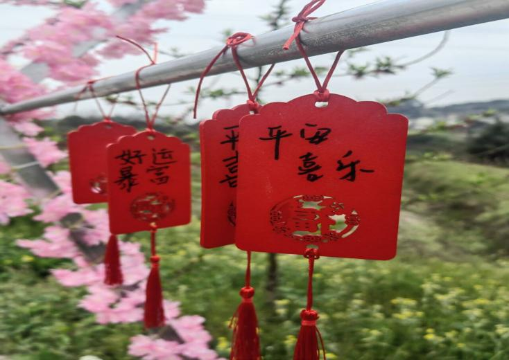 除同学们展示的才艺外,当地也举办了许多独具特色的节日活动:系桃花绳,红丝缕缕祝愿游客鸿运当头;钓桃花鱼,三寸金鲤预示人们年年有余;求桃花签,福缘绵绵祝愿大家所愿皆成;画桃花扇,艳丽粉墨勾勒人们心中桃源……此外,当地还推出野餐烧烤等活动,让游客们在景区尽情游玩。最后英语202202班何雨阳在桃花林中演奏吉他曲,曲声悠扬,引得众人相和,大家一起围坐桃林,赏花听曲,感受自然。