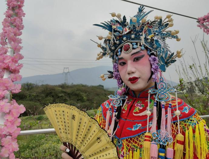 戏曲是中国传统艺术的一大瑰宝,蕴含着丰富的文化内涵。本次活动中,英语202202班王晨沣、英语202201班刘芯结合自身特长,进行戏曲变装展示。前一秒衣着时尚漫步楼宇,转瞬间身披戏袍徜徉桃林,两位同学将传统戏曲与现代文化结合,进行了一场跨越时空的文化碰撞,既让人感受到桃花潋滟,又觉戏曲唯美,令游客拍手叫好。