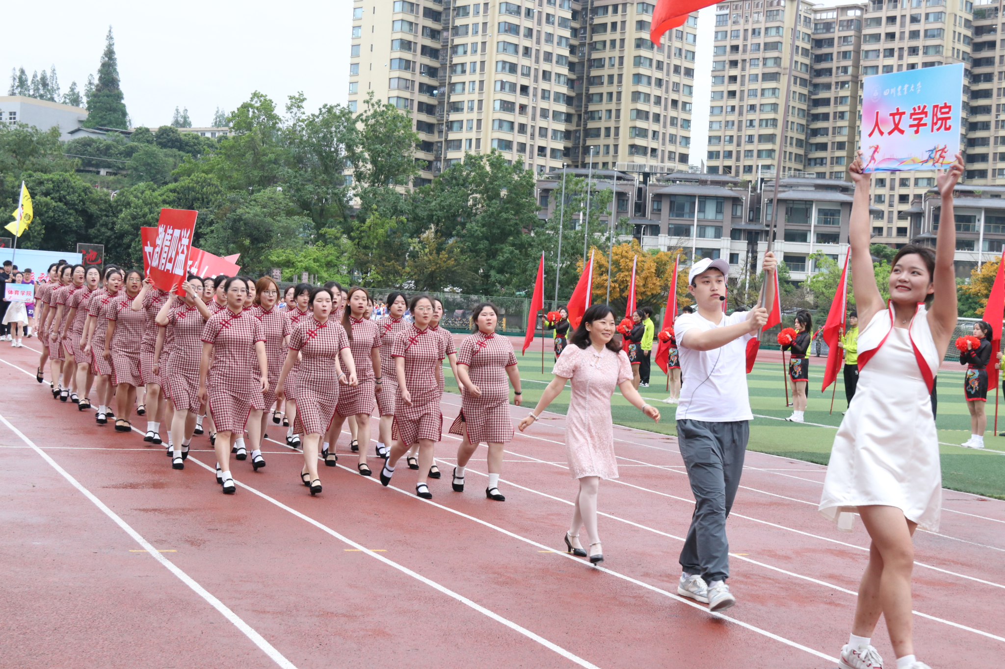 4月20日,公司第42届雅安校区校运会开幕式于三区运动场正式开展。彩旗飘扬,人潮涌动,各个公司的师生齐聚一堂,共同见证公司员工的青春活力与团队精神。开幕式上,太阳成集团tyc234cc方阵迈着整齐的步伐走过主席台,她们身着旗袍,在青春的节拍下,昂首阔步,在运动场上绽放出独属太阳成集团tyc234cc的光彩。