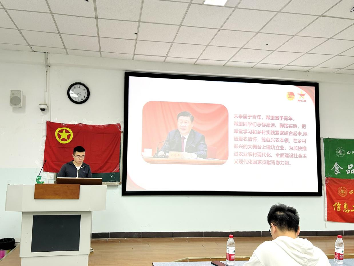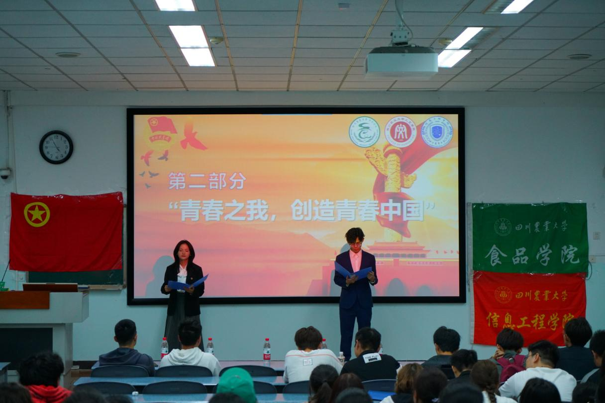 为持续学习贯彻习近平总书记关于青年工作的重要思想,厚植川农青年爱党爱国情怀,4月23日16:20,由汉语202301、汉语202302、食质202303、食健202301、食品公司团委直属部门流动团支部、信息工程直属部门流动团支部等班级和部门联合承办的“国家安全有我,青春挺膺担当”主题班团活动在十教A102成功举行。本次班团活动由食健202301陈晓倩、大数据202201张艺凡主持。