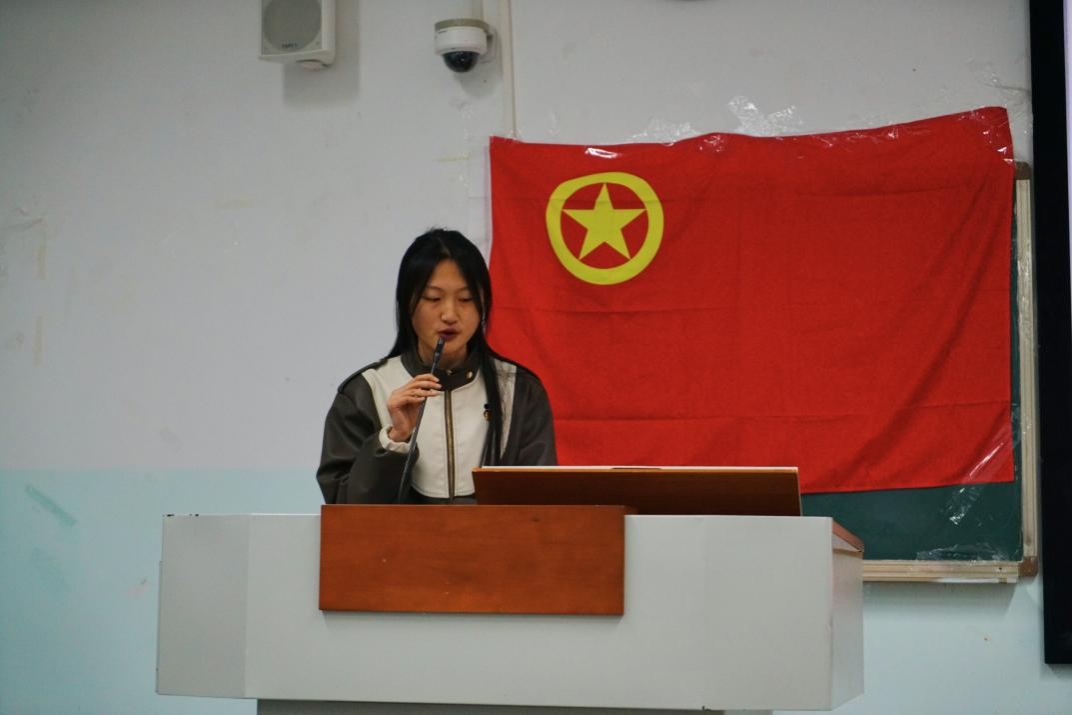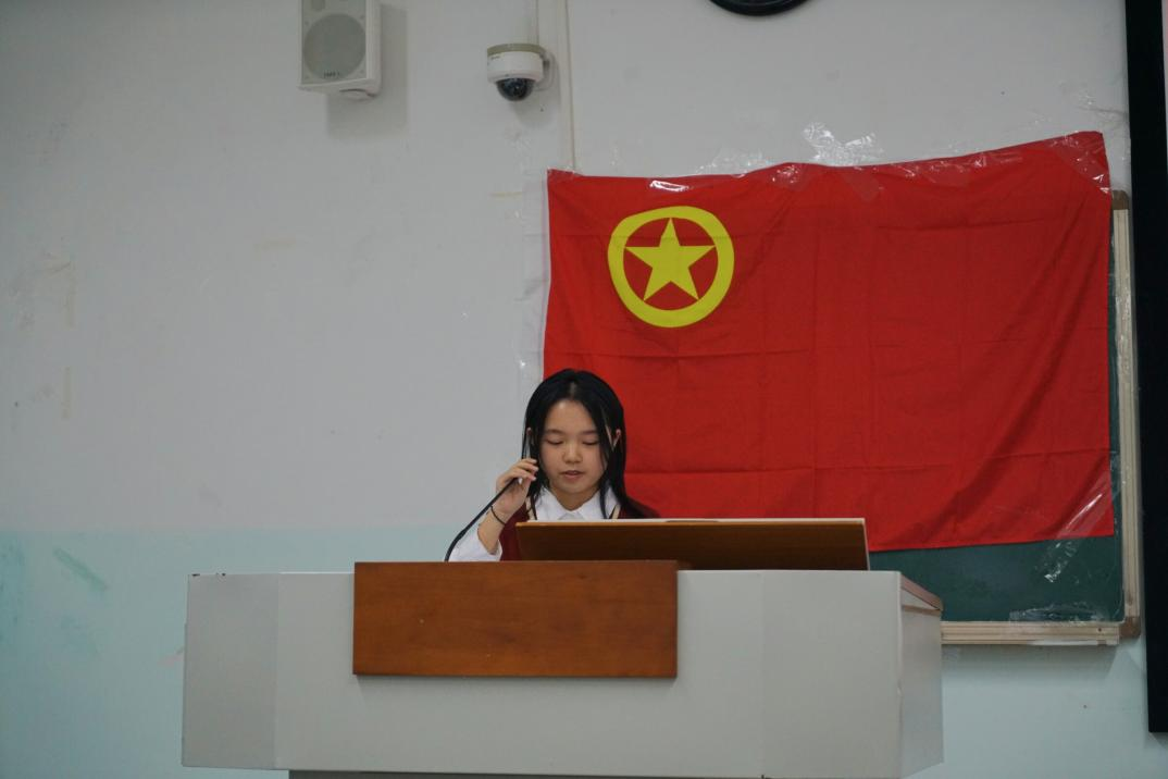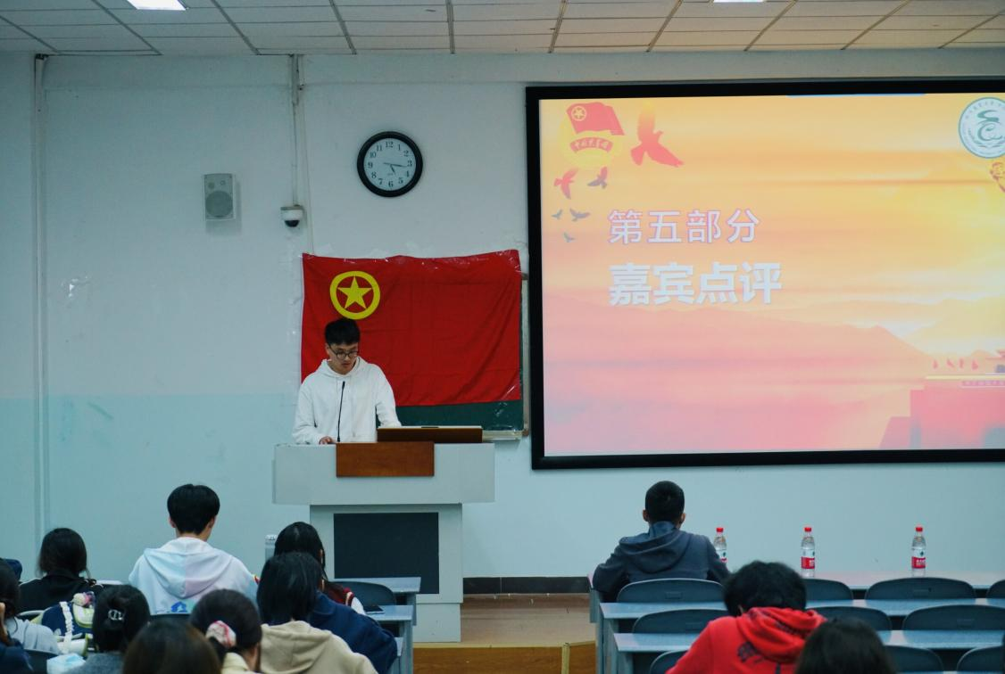 活动伊始,“我们是五月的花海,用青春拥抱时代……”,本次班团活动在参会同学合唱团歌的歌声中拉开序幕。