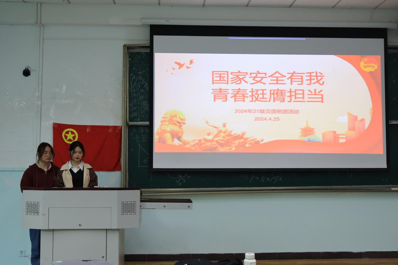 为深入学习贯彻习近平总书记关于全面加强国家安全教育的重要指示精神,4月25日16:20,由汉语202101团支部、汉语202102团支部、汉语202103团支部联合举办的“国家安全有我,青春挺膺担当”四月主题班团活动在十教A401顺利开展。
