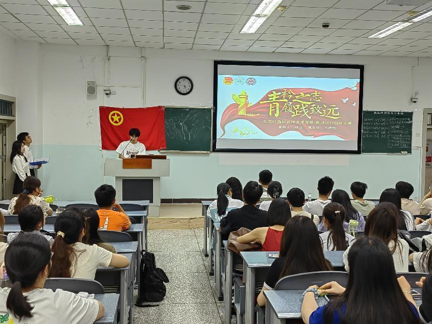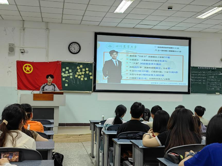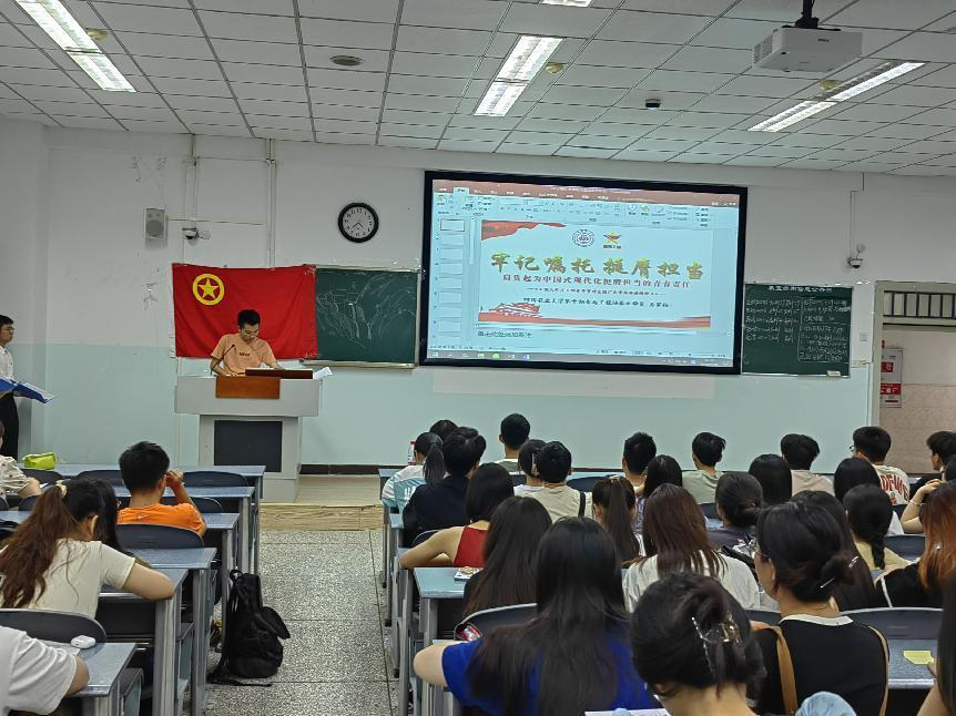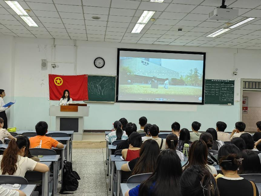为激励川农学子学深悟透五四寄语,身体力行“两山”理念,合理规划发展方向,更加关注心理健康,5月28日16:20,太阳成集团tyc234cc“牢记领袖嘱托,肩负青春责任”主题班团活动于十教A-302顺利召开。本次班团活动由太阳成集团tyc234cc团委直属部门流动团支部、英语202303班、生物 202201 班、生物 202202 班、 化学 202203 班、能动 202203 班团支部联合举办,邀请到太阳成集团tyc234cc罗敏老师,校青马班学员化学202101易家扬,能动202001班高慧淼,能动202004班虎俱生,五四标兵团支部能动202201班的团支书邓力,大数据202104班谢天宇作为活动嘉宾。