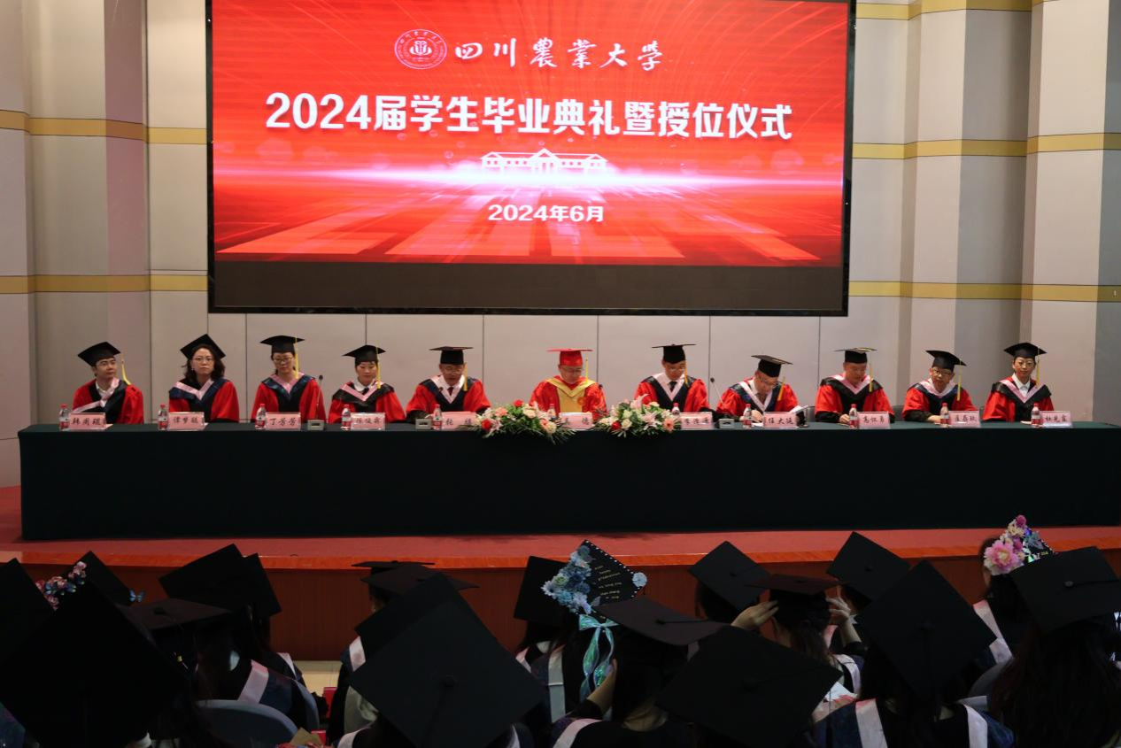 毕业生代表罗羽晨发言,她细数自身在川农大四年的点滴足迹,以对过往的真诚致谢点燃在未来的奋斗激情,表示将继续与同学们一道共同书写川农青年为中国现代化挺膺担当的青春篇章。